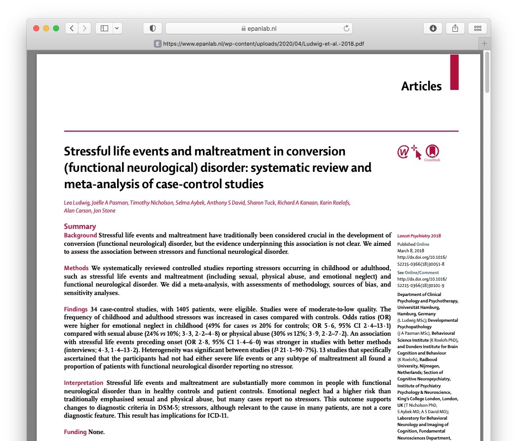 Highly common in FND (compared to case controls, Ludwig et al., 2018).